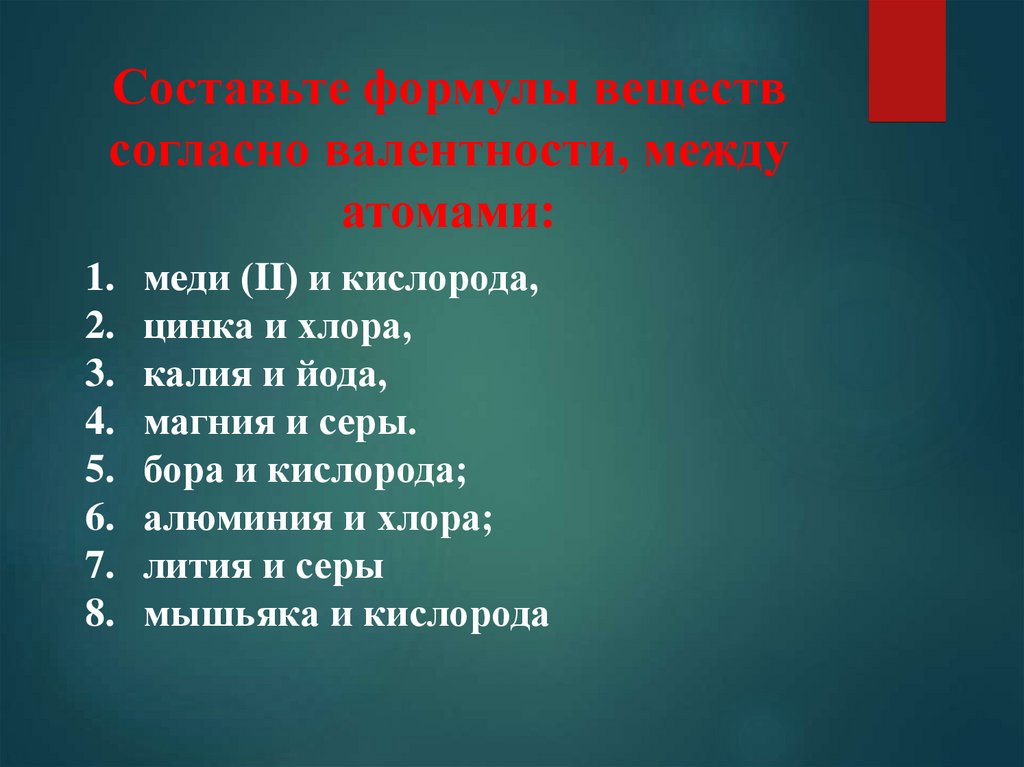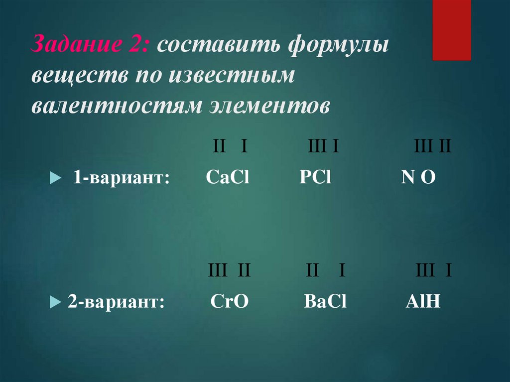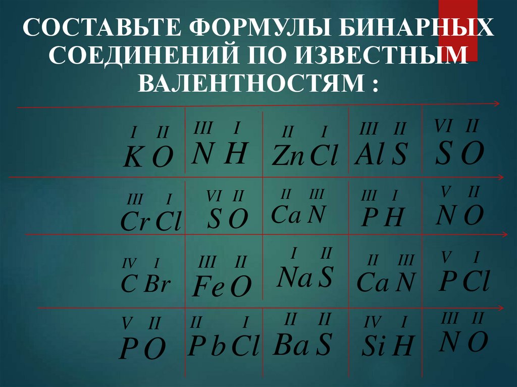 СОСТАВЬТЕ ФОРМУЛЫ БИНАРНЫХСОЕДИНЕНИЙ ПО ИЗВЕСТНЫМ
