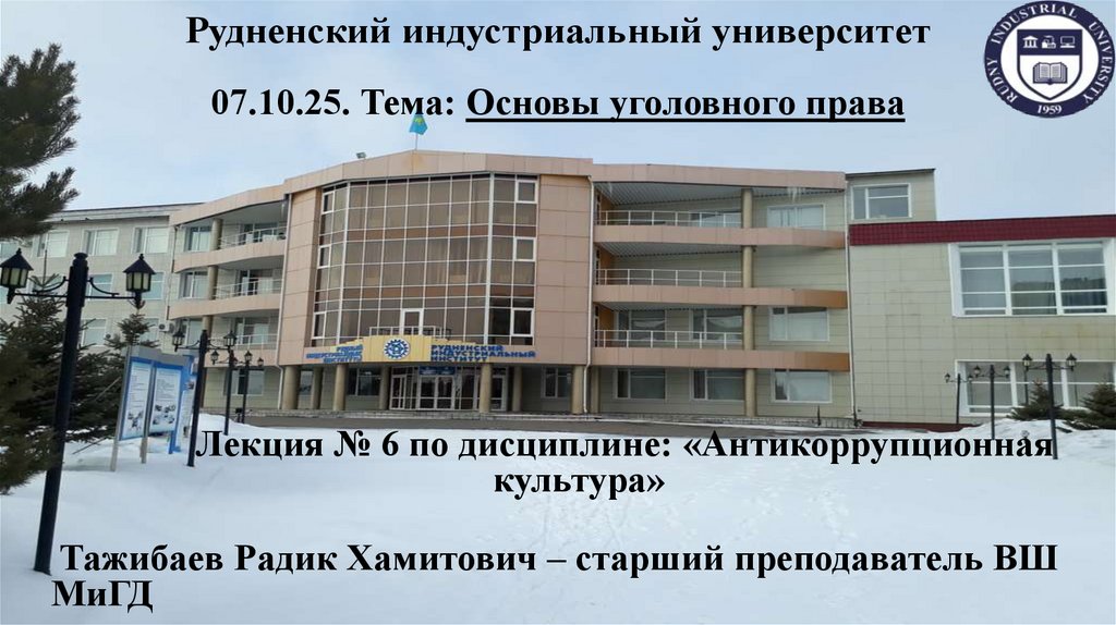 07.10.25. Тема: Основы уголовного праваЛекция № 6 по дисциплине: «Антикоррупционная