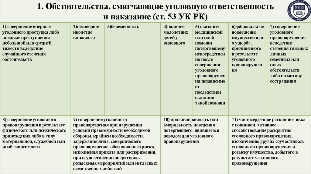 1. Обстоятельства, смягчающие уголовную ответственностьи наказание (ст. 53 УК РК)
