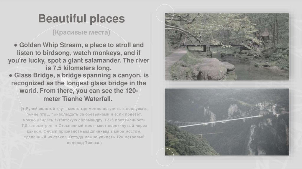 7,5 километров. ● Стеклянный мост- мост перекинутый через