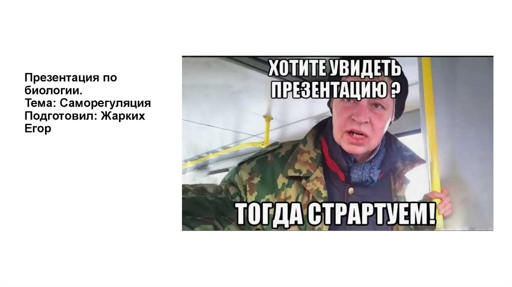 1. Презентация по биологии. Тема: Саморегуляция Подготовил: Жарких Егор
