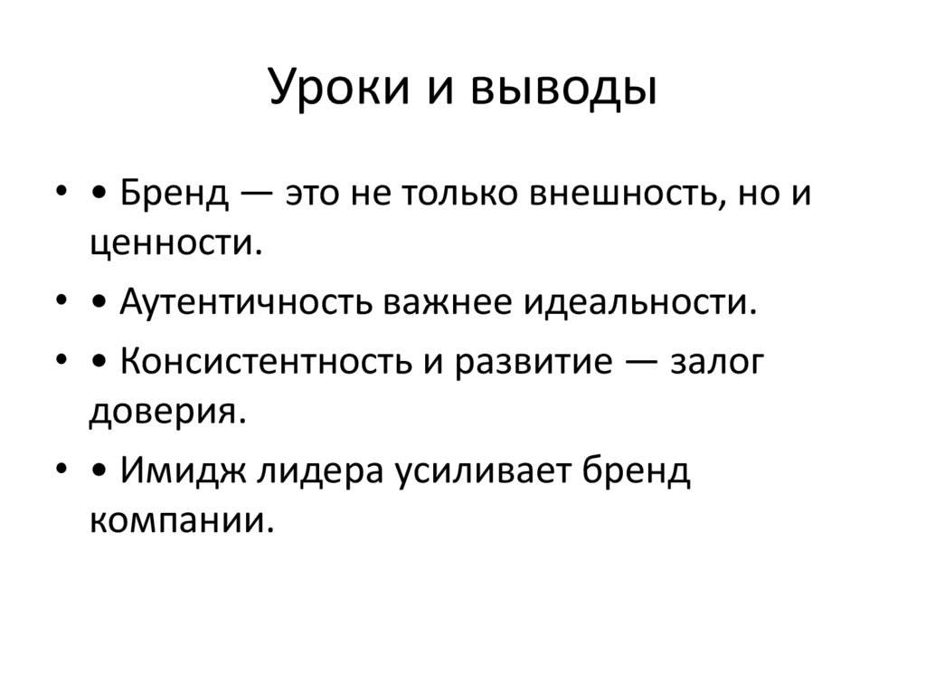 Уроки и выводы• • Бренд — это не только внешность, но и