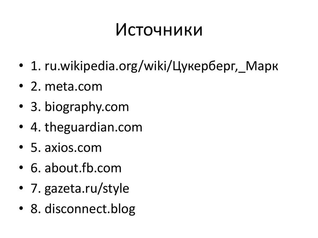 Источники• 1. ru.wikipedia.org/wiki/Цукерберг,_Марк