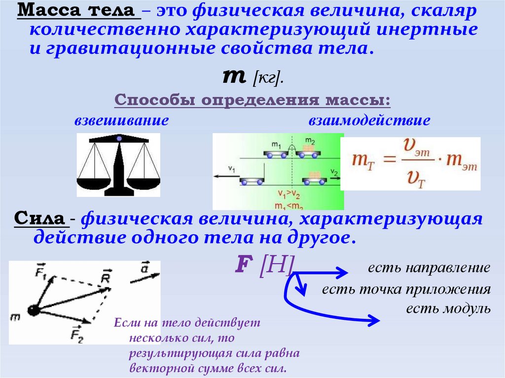 Масса тела – это физическая величина, скалярколичественно характеризующий инертные