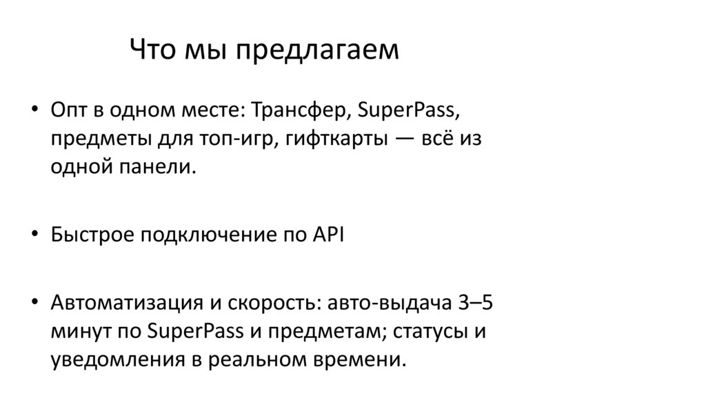 Что мы предлагаем• Опт в одном месте: Трансфер, SuperPass,
