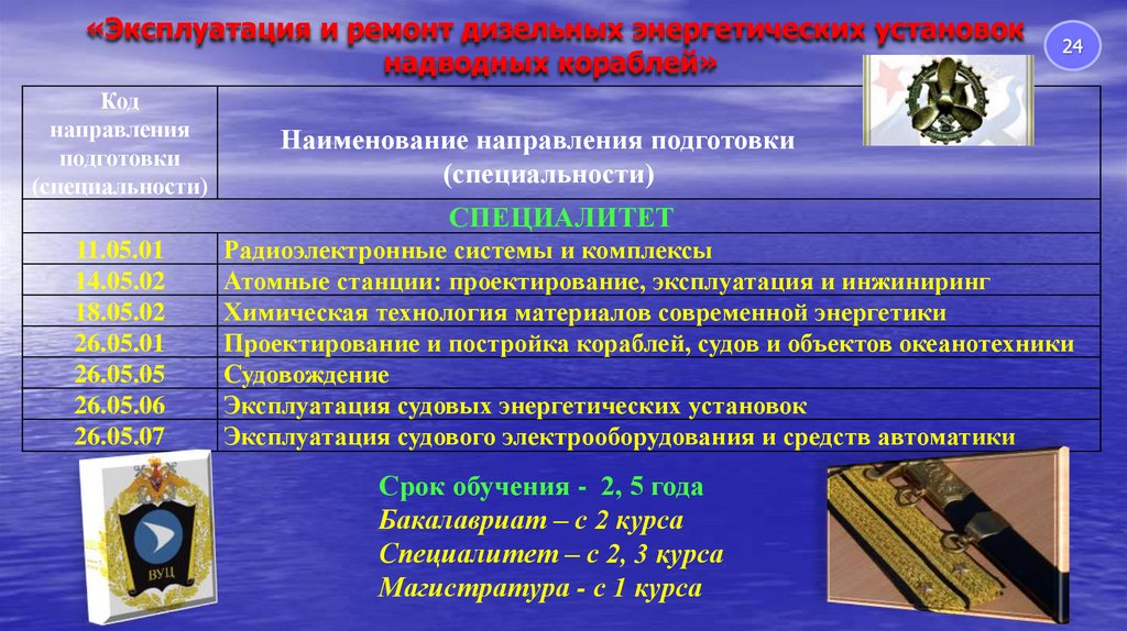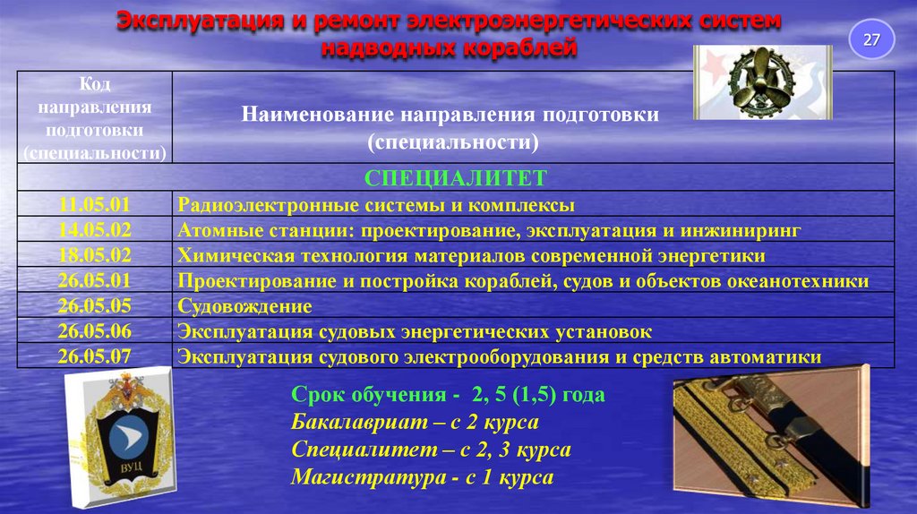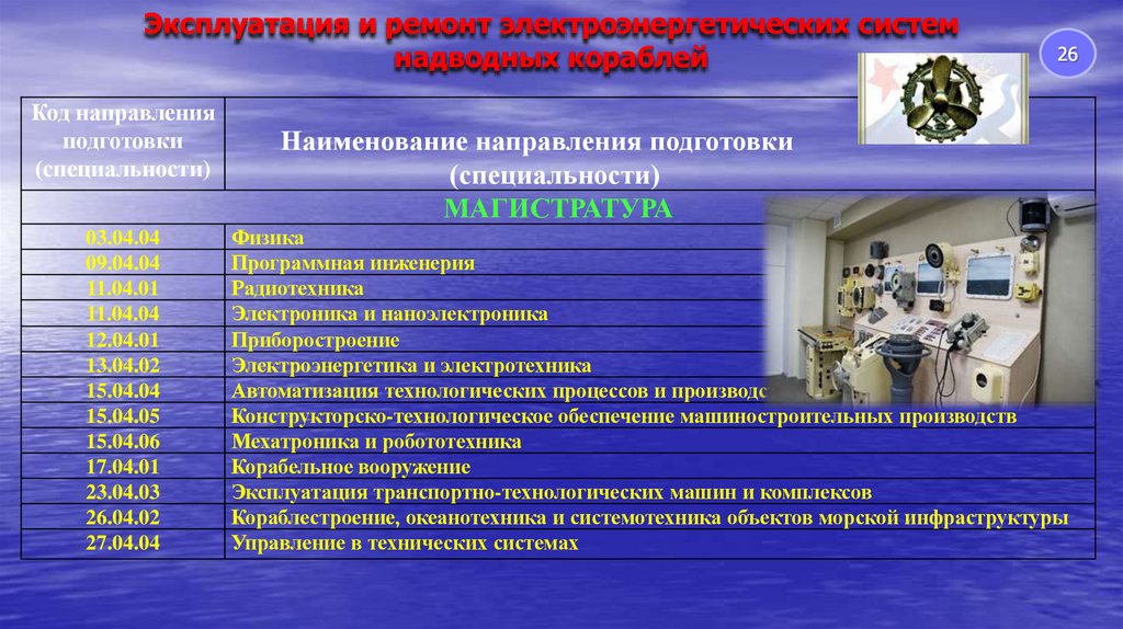 6. Цикл № 1 – электромеханических систем надводных кораблей Начальник цикла
