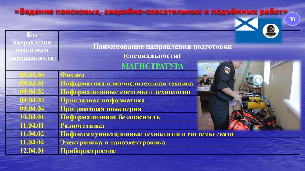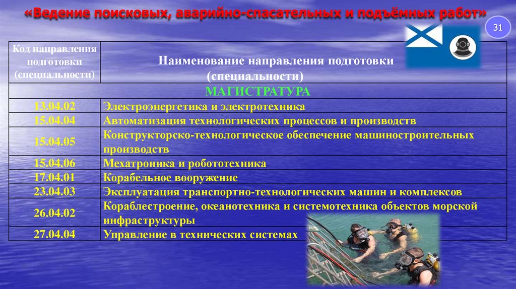 8. Цикл № 2 – поисковых, аварийно-спасательных и водолазных работ Начальник цикла