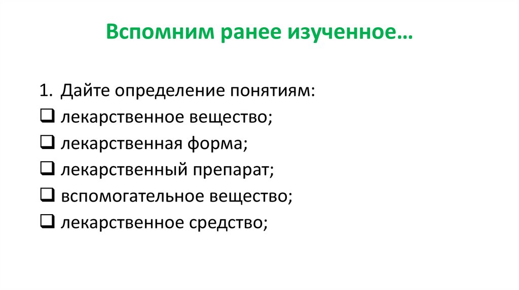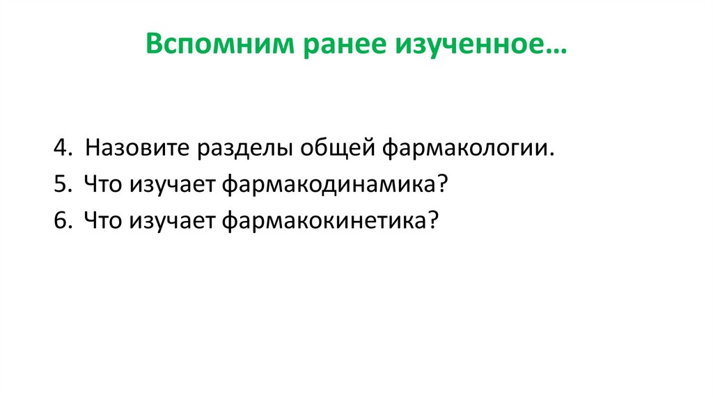 Вспомним ранее изученное…4. Назовите разделы общей фармакологии.