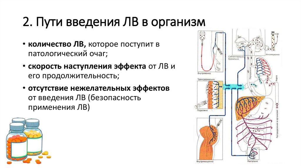2. Пути введения ЛВ в организм• количество ЛВ, которое поступит в