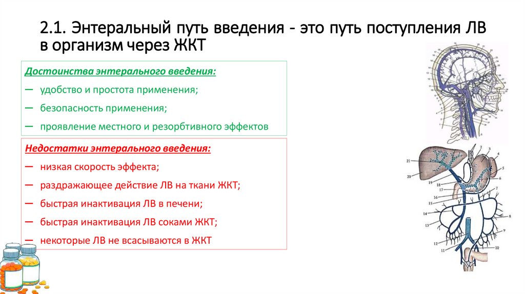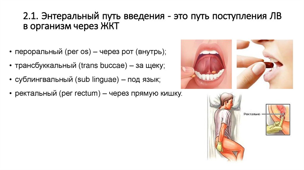 2.1. Энтеральный путь введения - это путь поступления ЛВв организм через ЖКТ