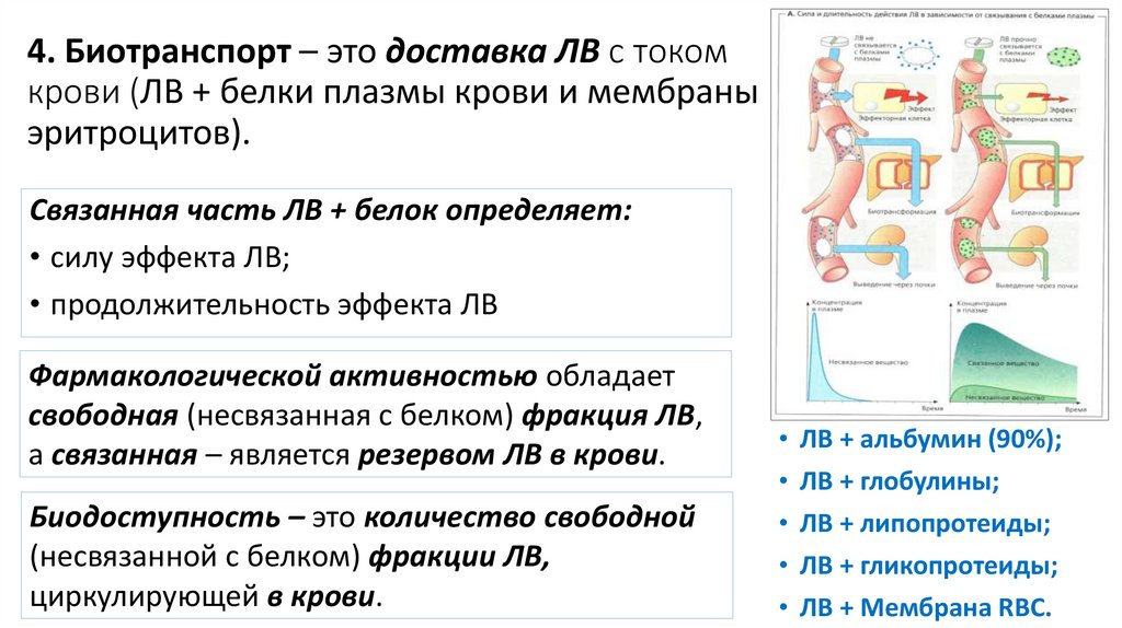 Биотранспорт (связь ЛВ с Rp/RBC крови);