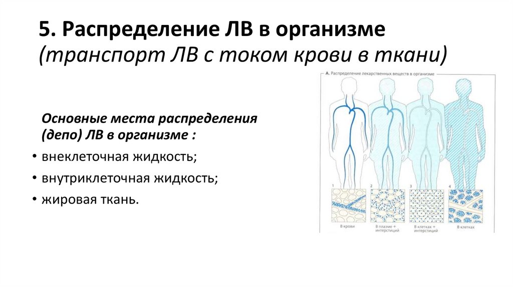 5. Распределение ЛВ в организме(транспорт ЛВ с током крови в ткани)