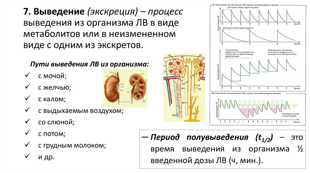 7. Выведение ЛВ и их метаболитов