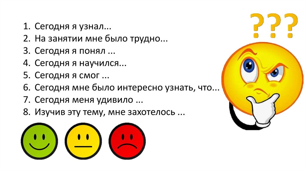 1. Сегодня я узнал...2. На занятии мне было трудно...