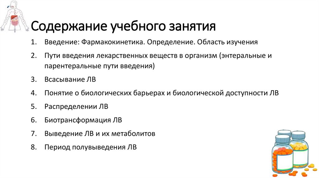 Содержание учебного занятия1. Введение: Фармакокинетика. Определение. Область изучения