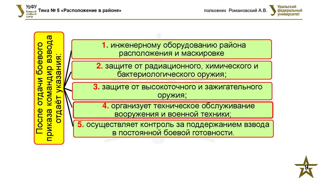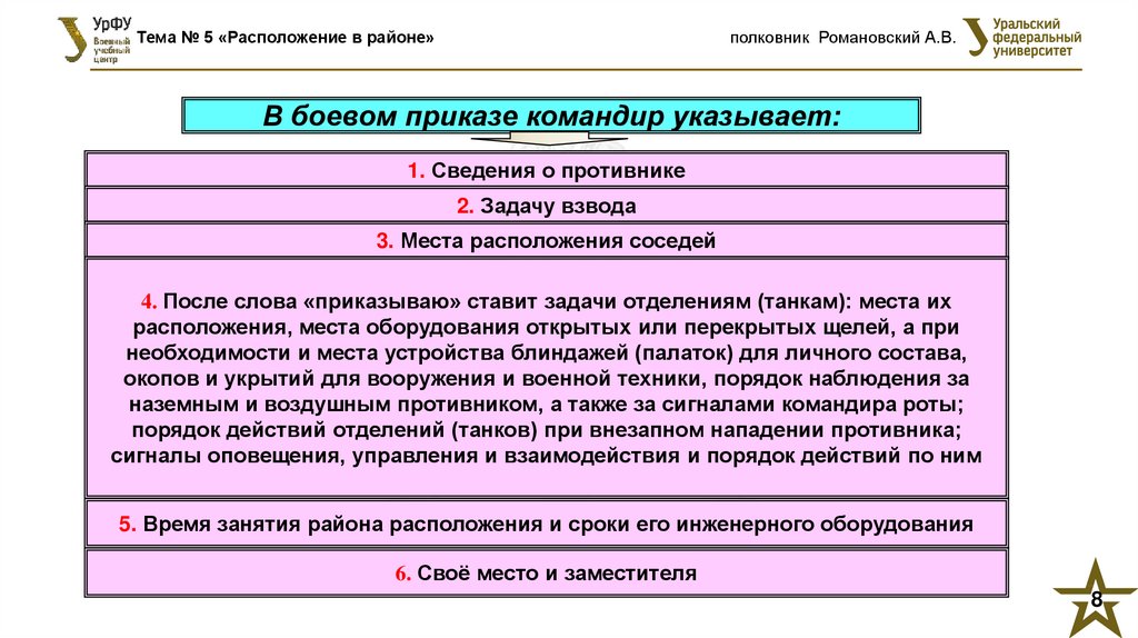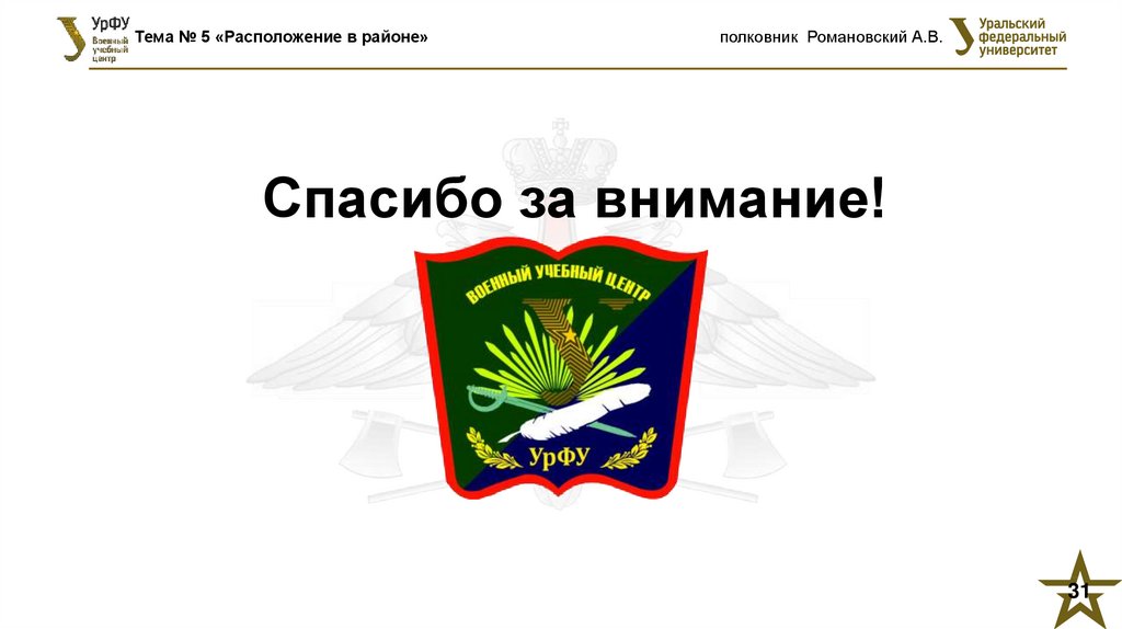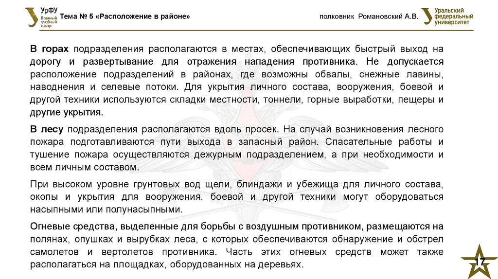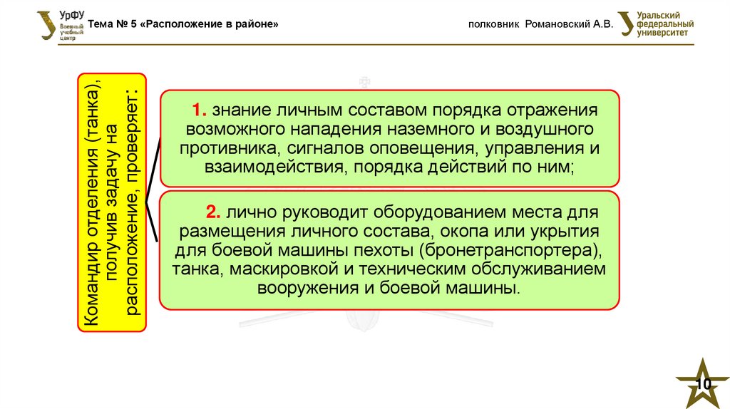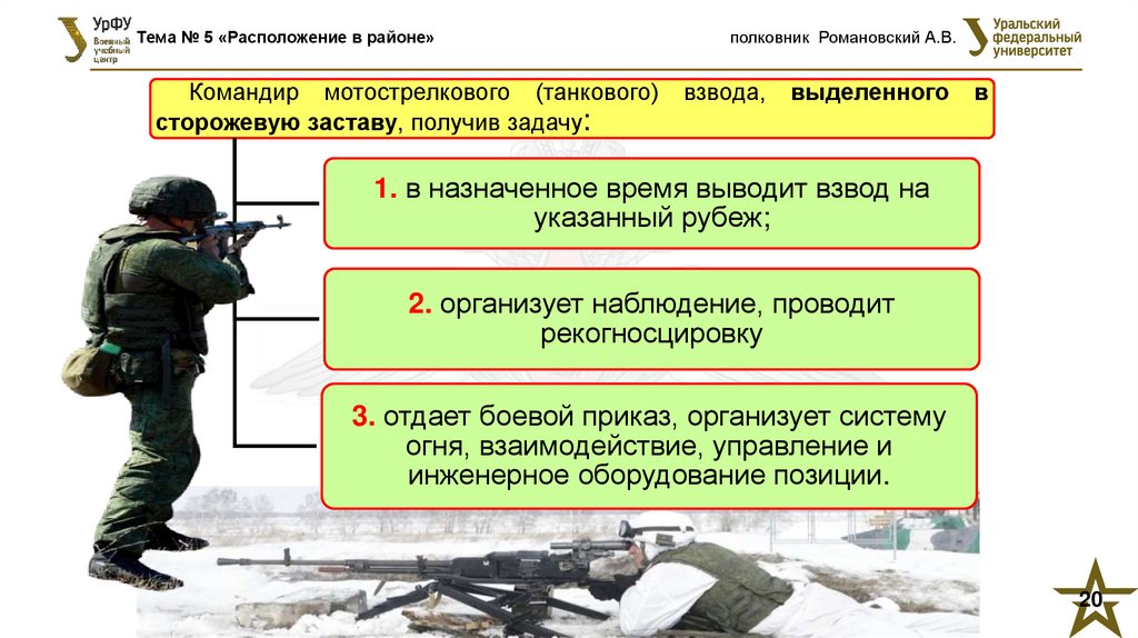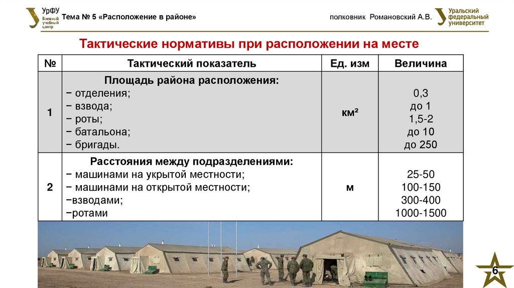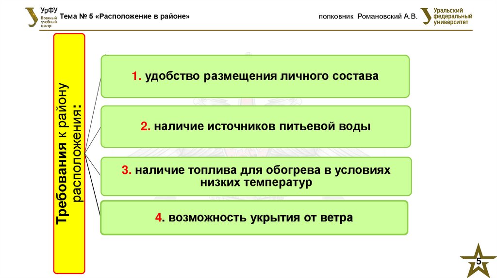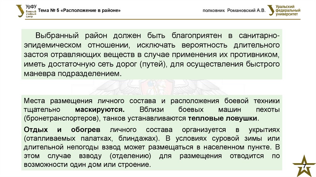 Тема № 5 «Расположение в районе»полковник Романовский А.В.