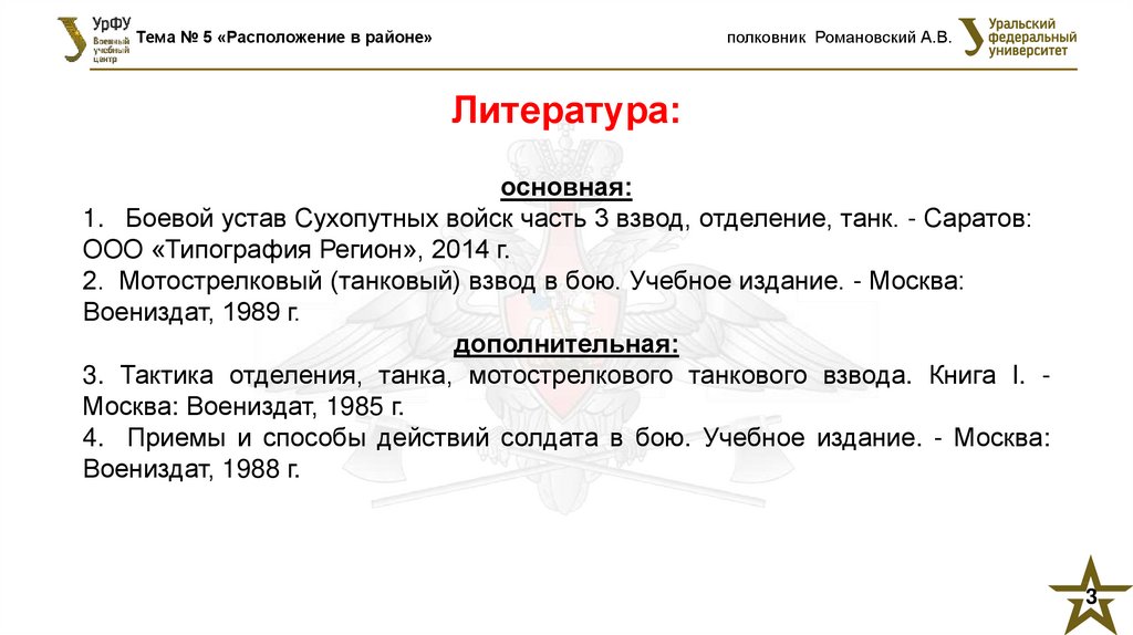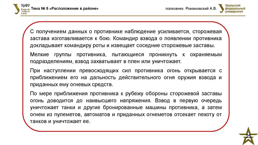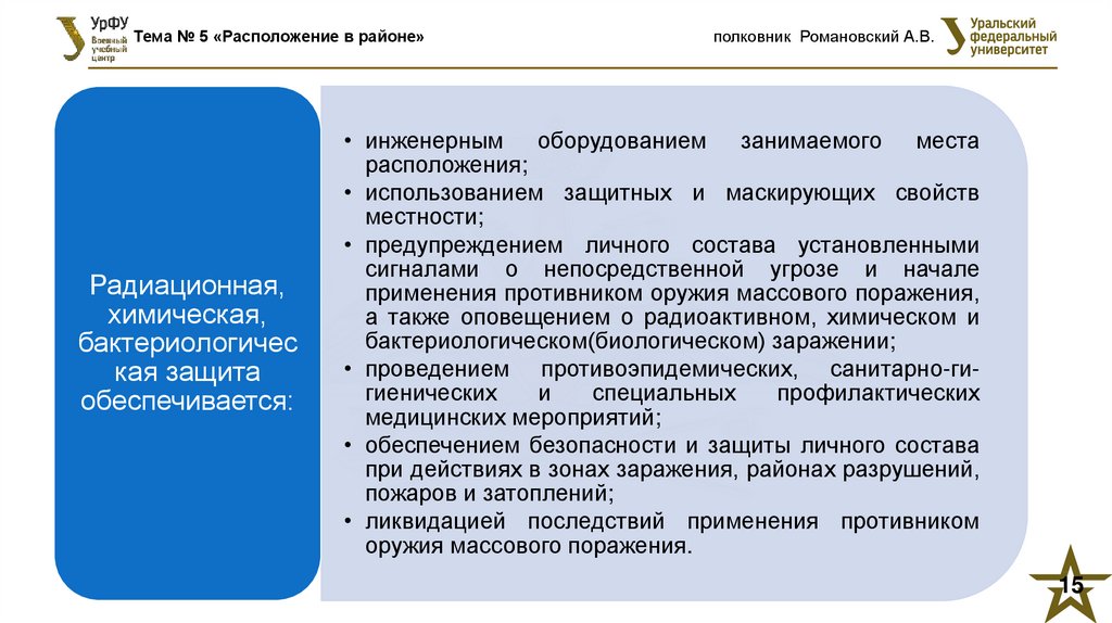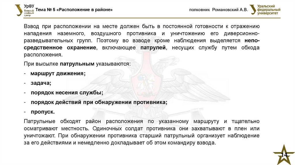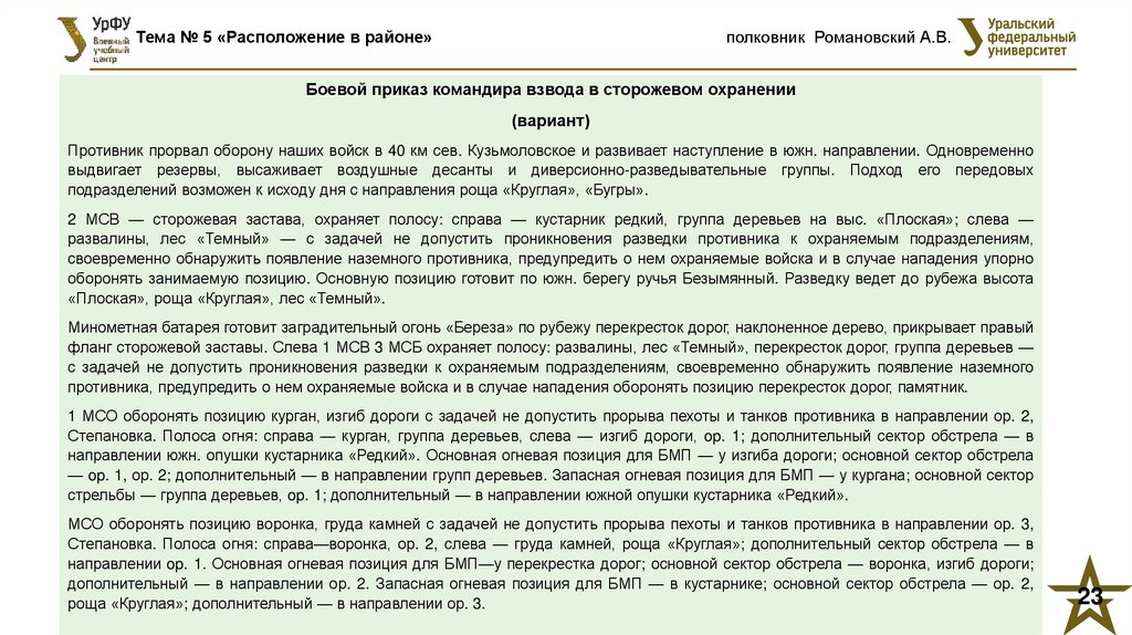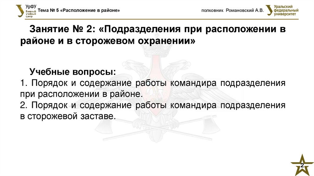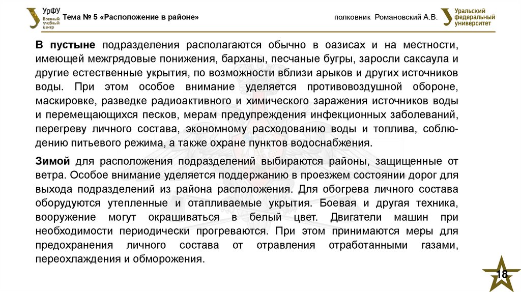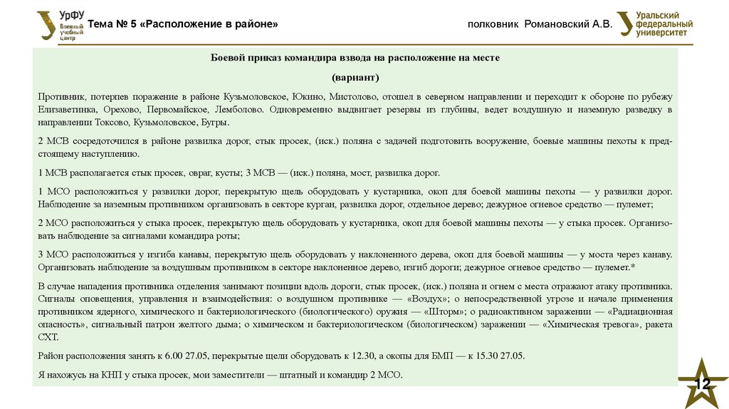 Тема № 5 «Расположение в районе»полковник Романовский А.В.