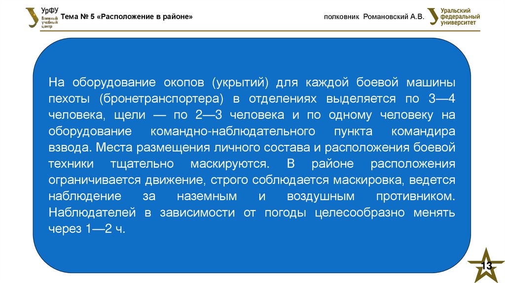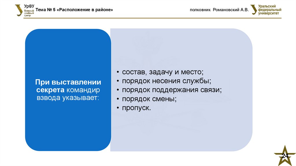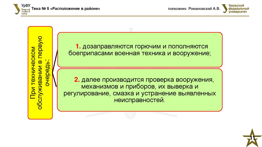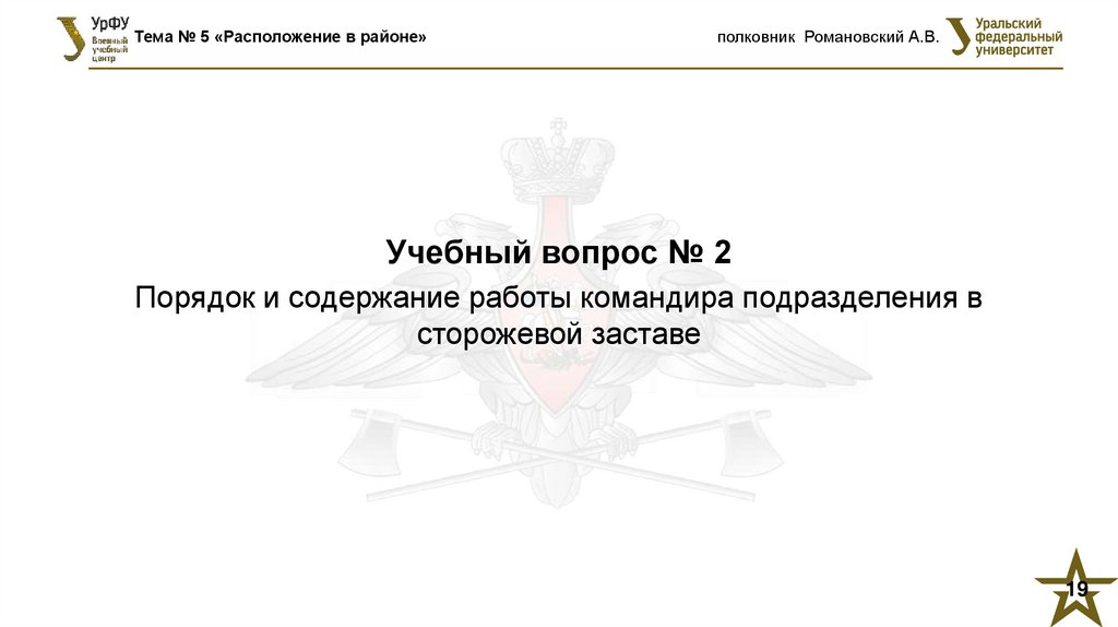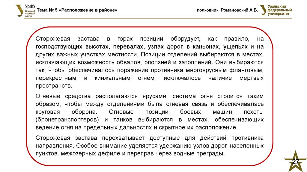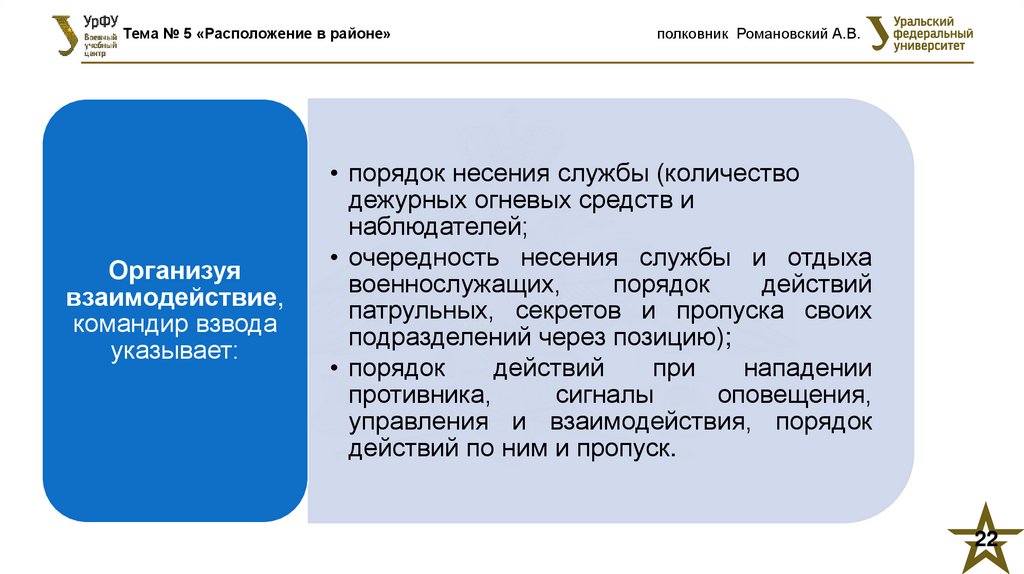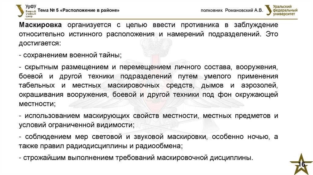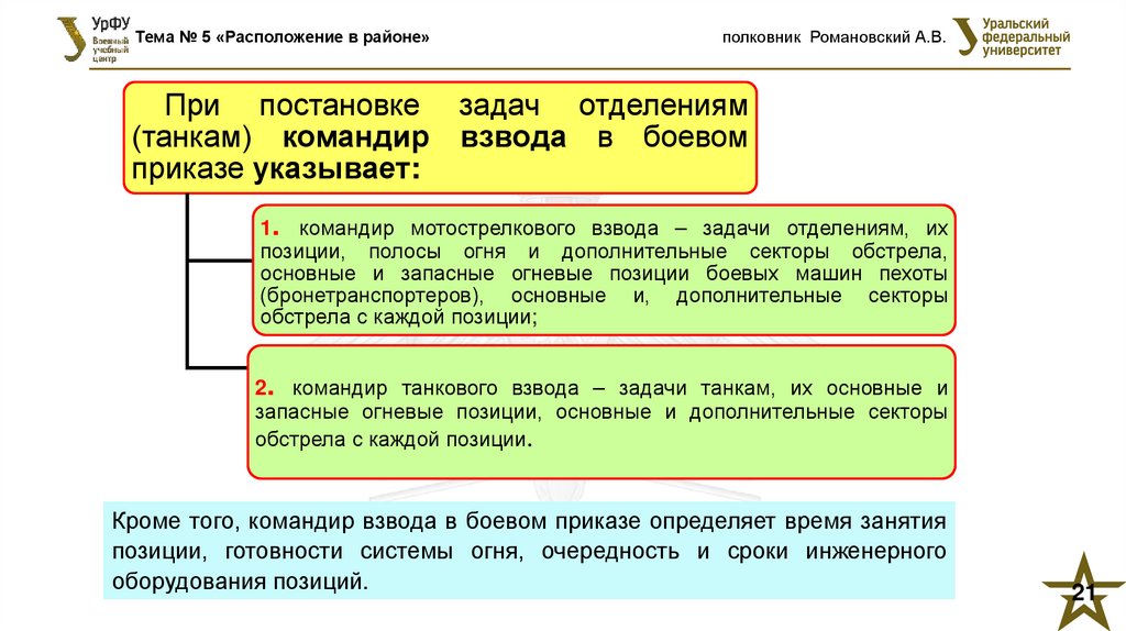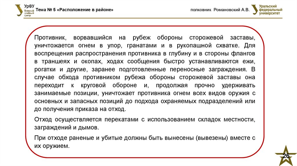Тема № 5 «Расположение в районе»полковник Романовский А.В.