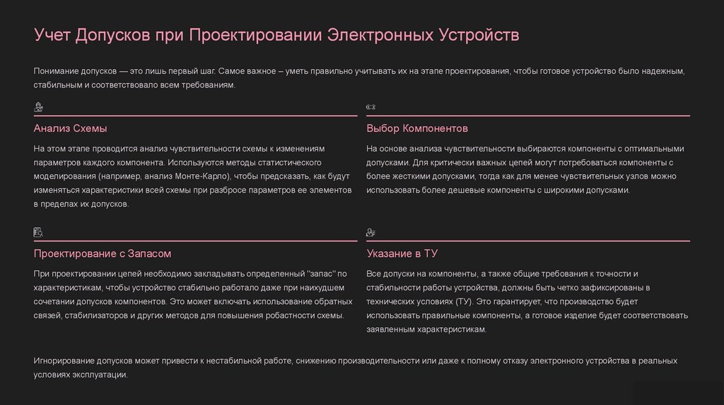 Игнорирование допусков может привести к нестабильной работе, снижению производительности или даже к полному отказу электронного устройства в реальных