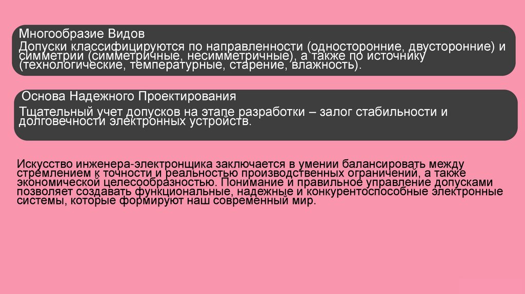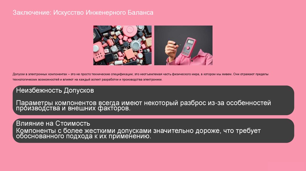 Заключение: Искусство Инженерного БалансаДопуски в электронных компонентах – это не просто технические спецификации; это неотъемлемая часть физического мира, в котором мы живем. Они отражают пределы