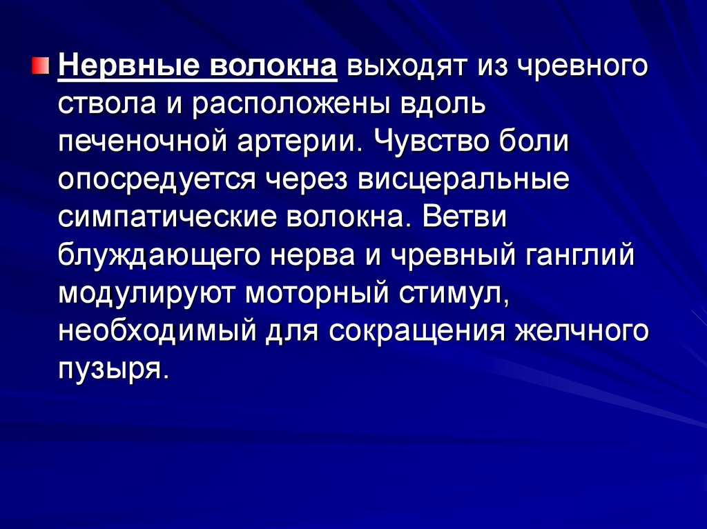 Нервные волокна выходят из чревногоствола и расположены вдоль
