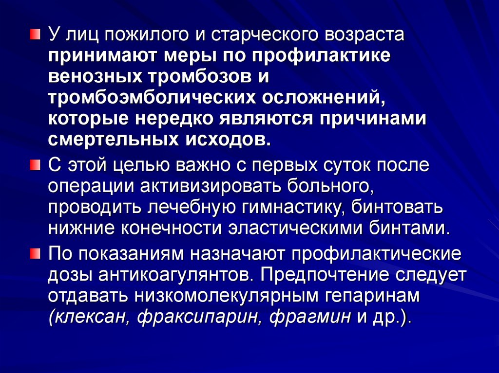 У лиц пожилого и старческого возрастапринимают меры по профилактике