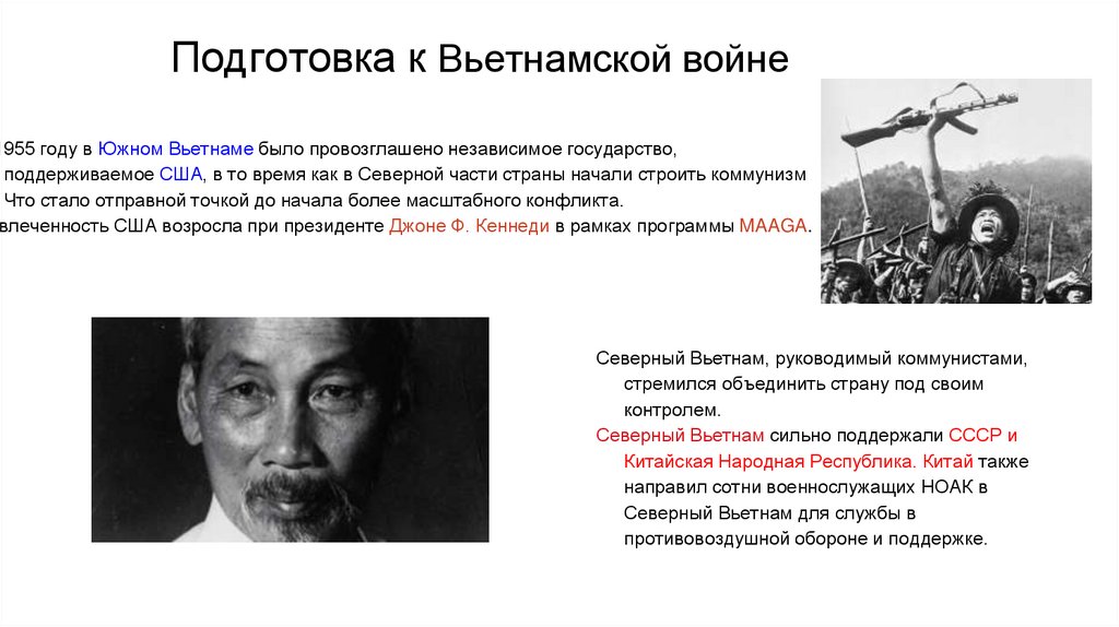 Подготовка к Вьетнамской войне1955 году в Южном Вьетнаме было провозглашено независимое государство,