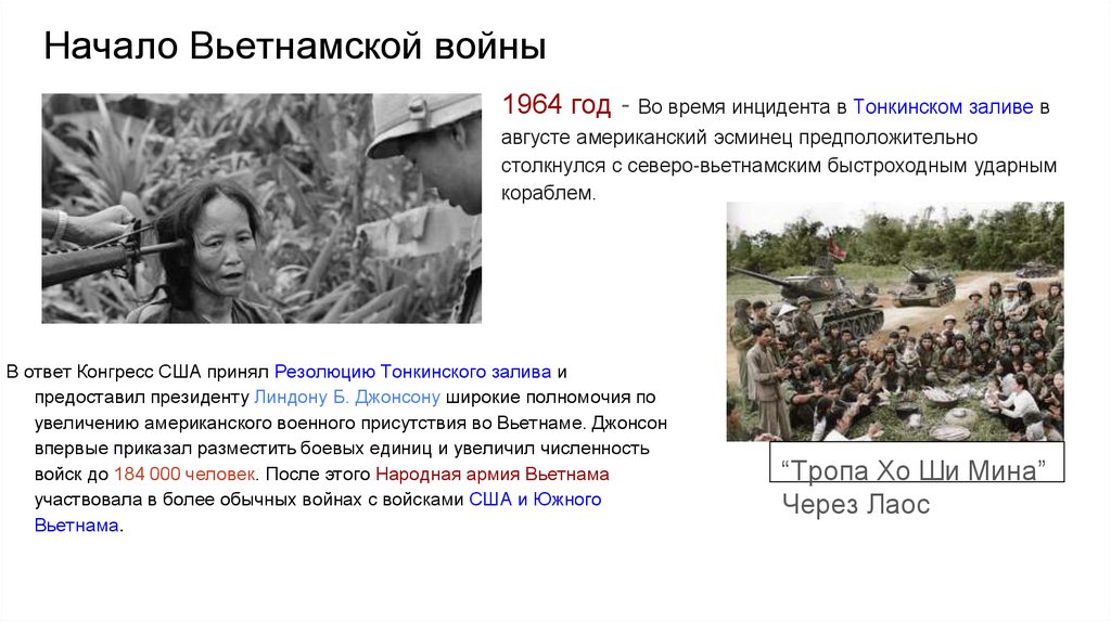 Начало Вьетнамской войны1964 год - Во время инцидента в Тонкинском заливе в