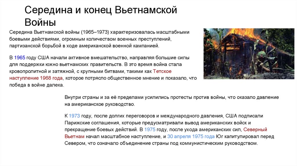 Середина Вьетнамской войны (1965–1973) характеризовалась масштабными