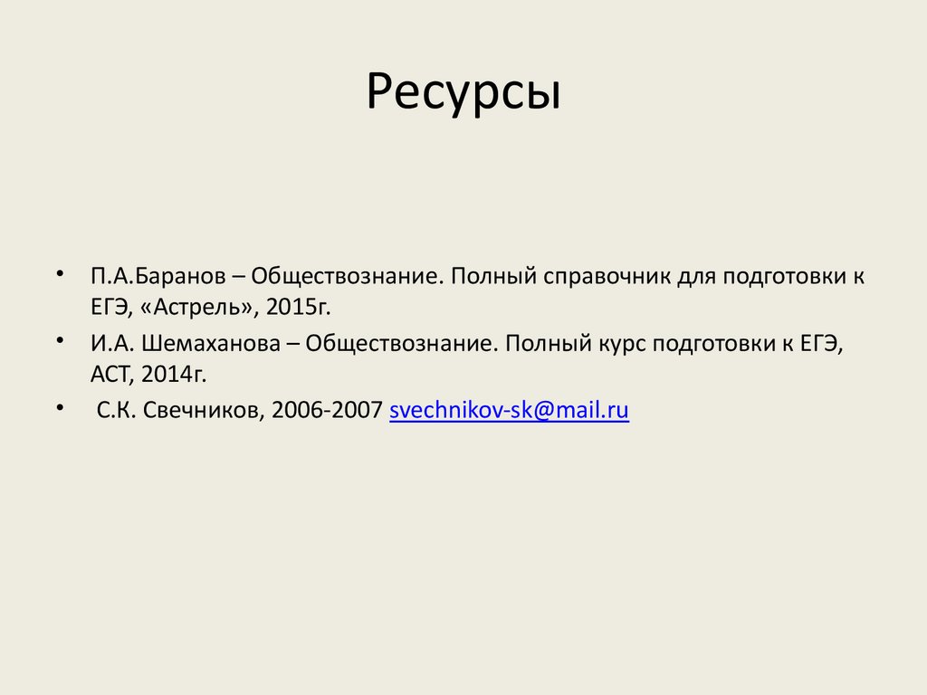 Ресурсы• П.А.Баранов – Обществознание. Полный справочник для подготовки к