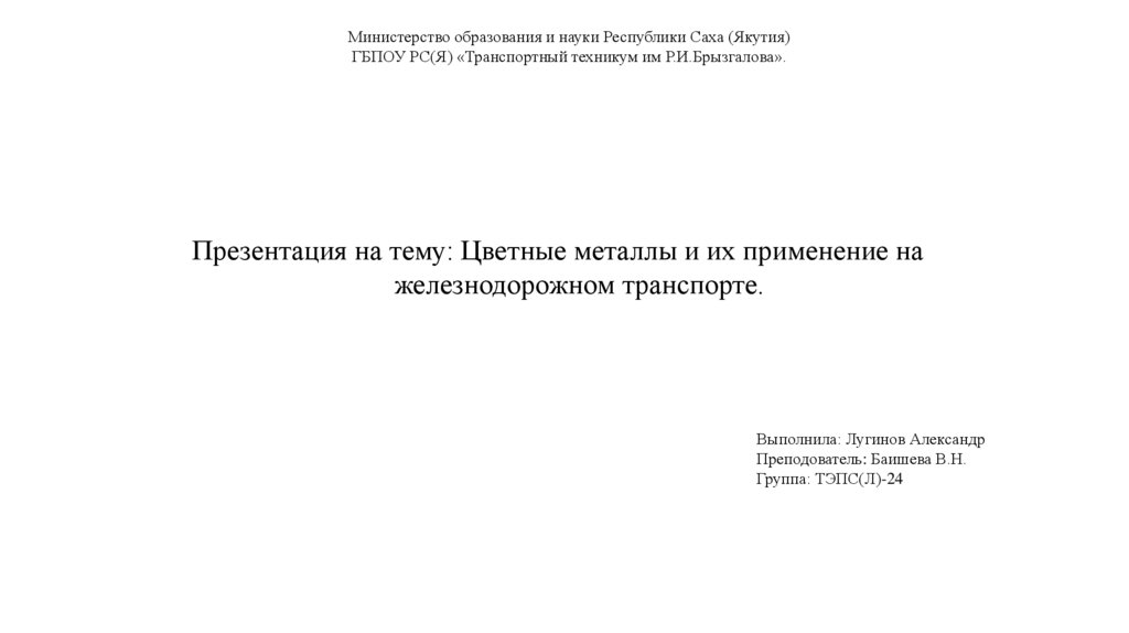 Министерство образования и науки Республики Саха (Якутия)ГБПОУ РС(Я) «Транспортный техникум им Р.И.Брызгалова».