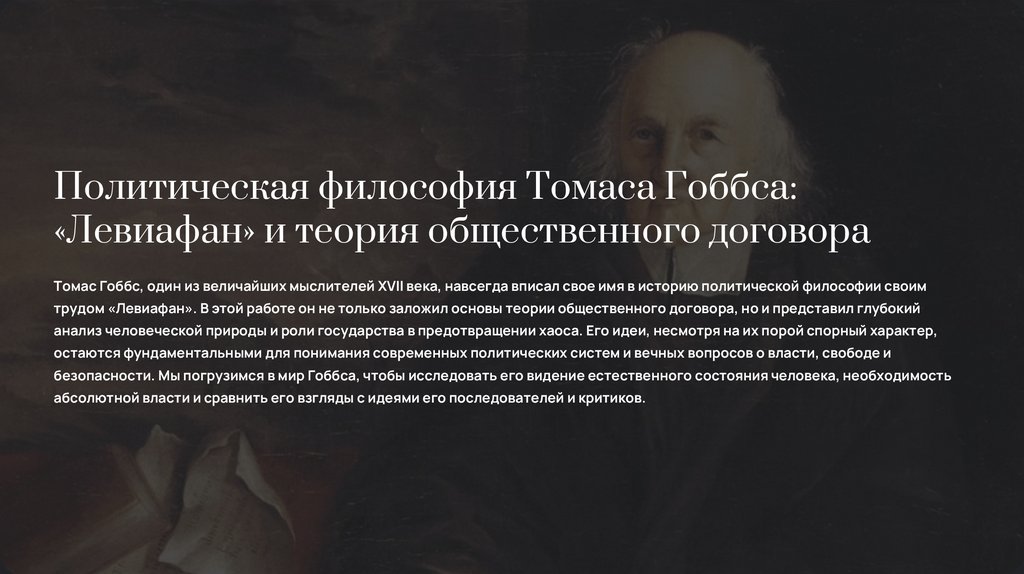 Томас Гоббс, один из величайших мыслителей XVII века, навсегда вписал свое имя в историю политической философии своим