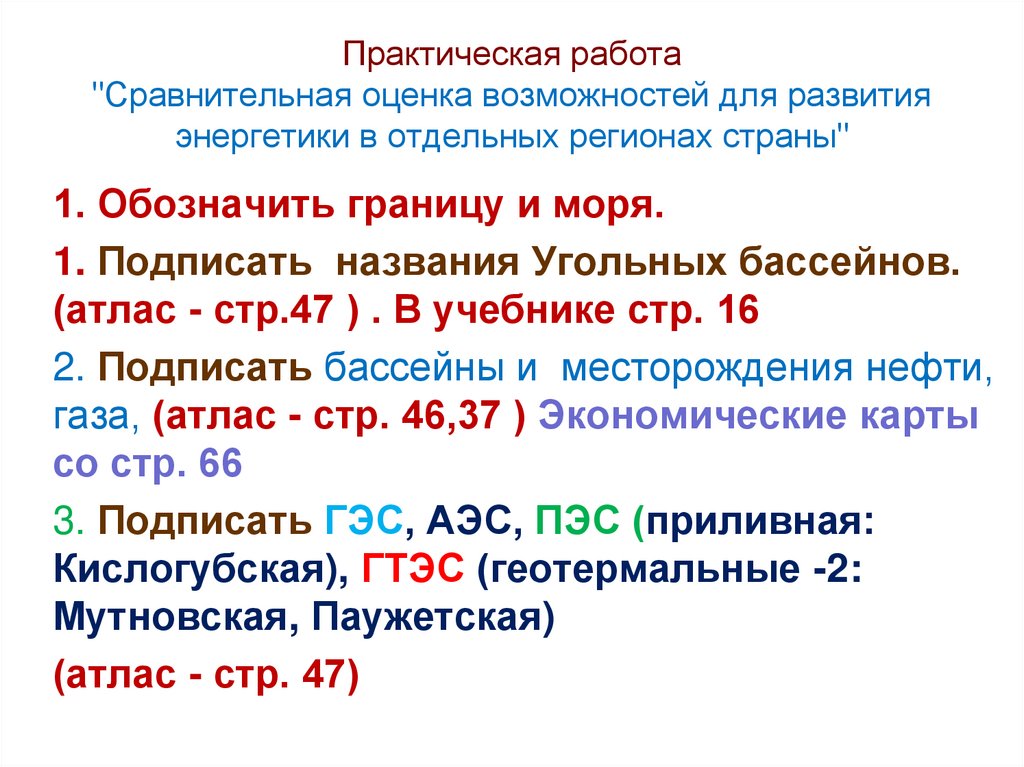 Практическая работа "Сравнительная оценка возможностей для развития энергетики в отдельных регионах страны"