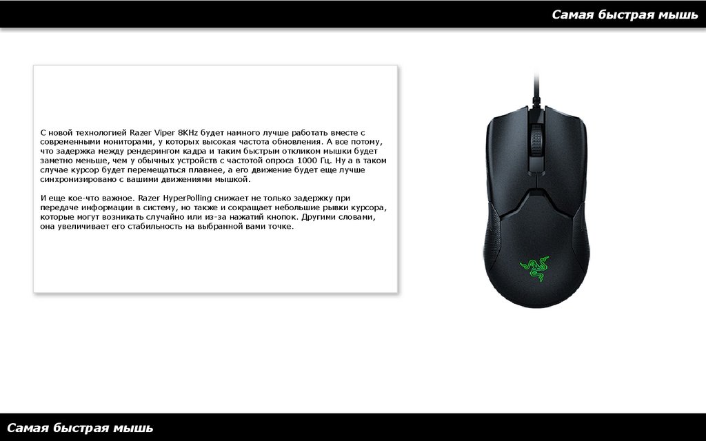 Самая быстрая мышьС новой технологией Razer Viper 8KHz будет намного лучше работать вместе с