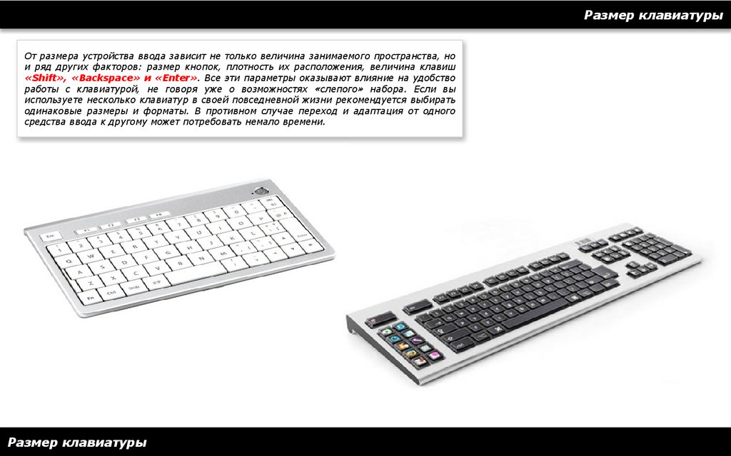 Размер клавиатурыОт размера устройства ввода зависит не только величина занимаемого пространства, но