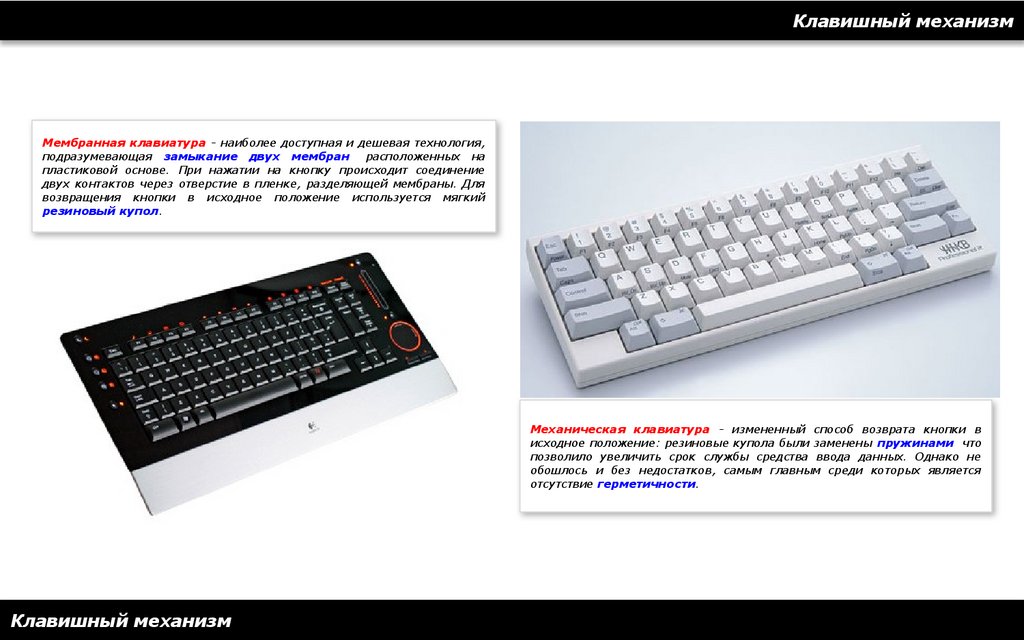 Клавишный механизмМембранная клавиатура - наиболее доступная и дешевая технология,