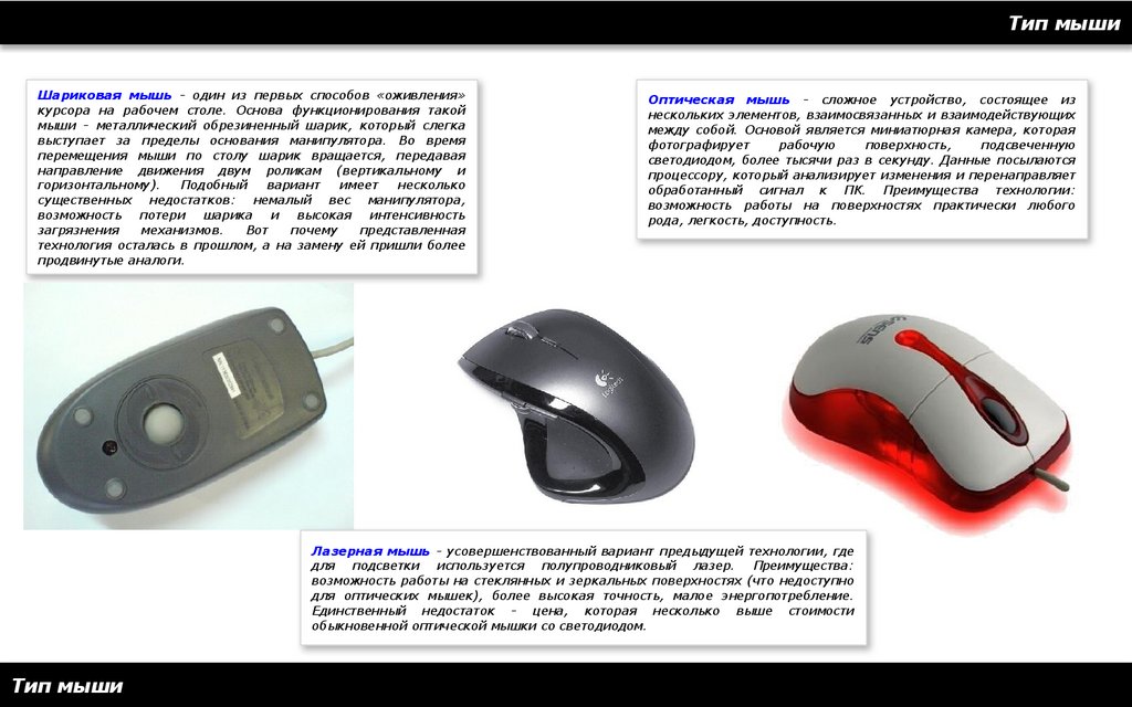 Тип мышиШариковая мышь - один из первых способов «оживления»