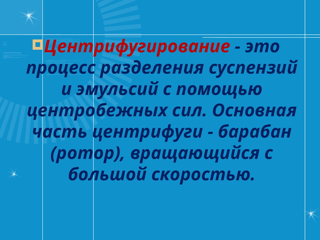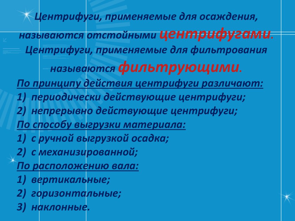 Центрифуги, применяемые для осаждения,называются отстойными центрифугами.