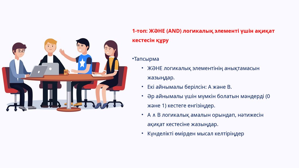 1-топ: ЖӘНЕ (AND) логикалық элементі үшін ақиқаткестесін құру