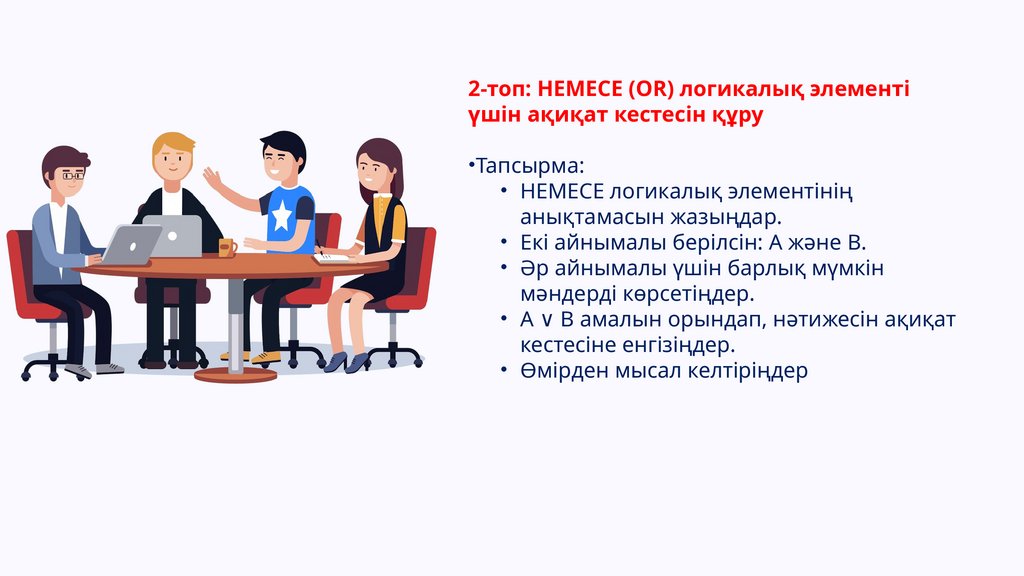 2-топ: НЕМЕСЕ (OR) логикалық элементіүшін ақиқат кестесін құру