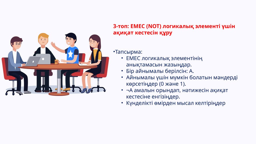 3-топ: ЕМЕС (NOT) логикалық элементі үшінақиқат кестесін құру