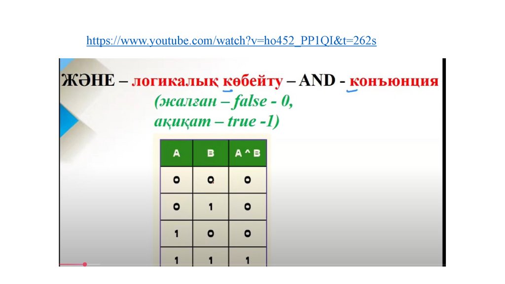 • A ∧ B логикалық амалын орындап, нәтижесін