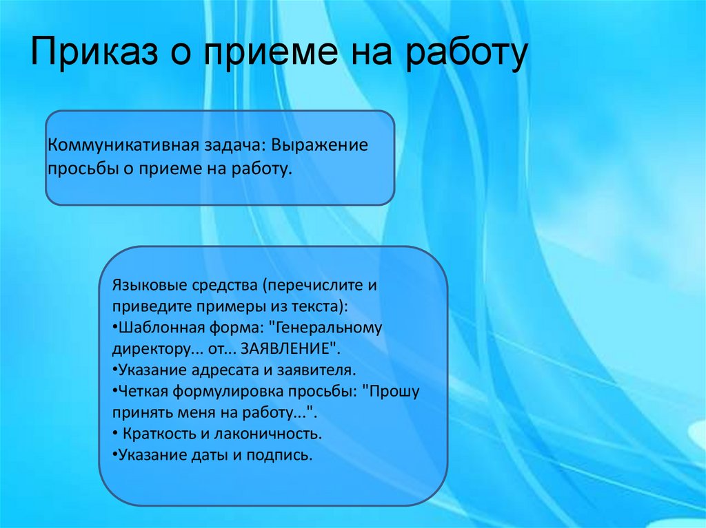 Приказ о приеме на работуКоммуникативная задача: Выражение