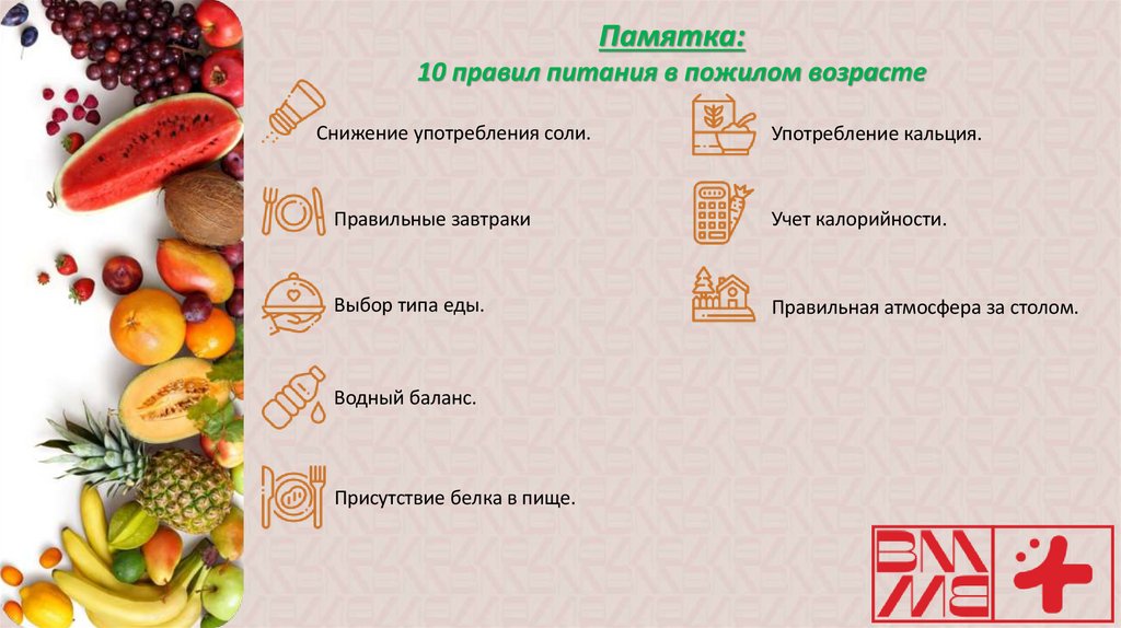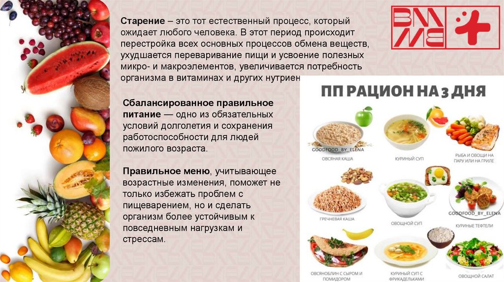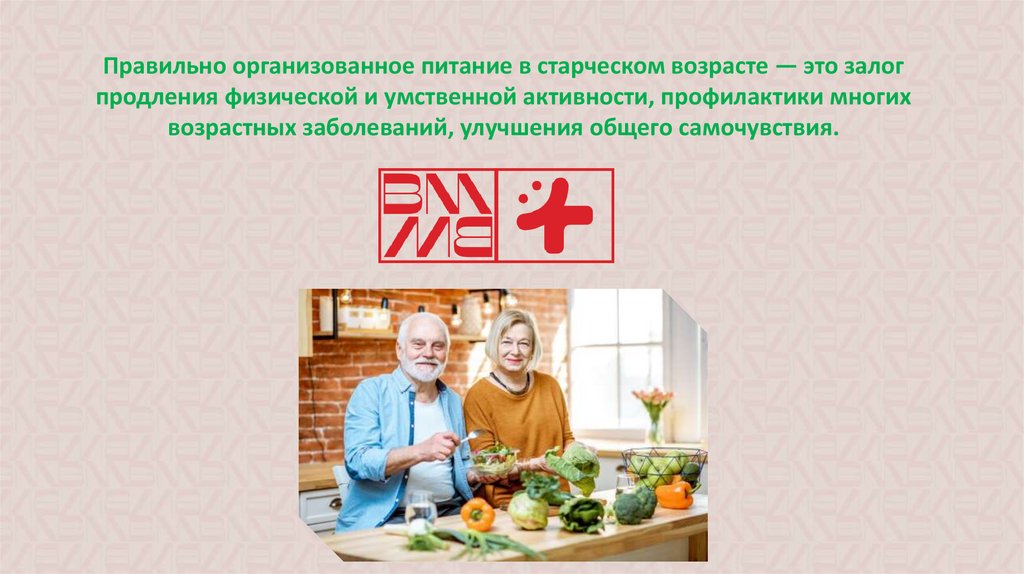 Правильно организованное питание в старческом возрасте — это залогпродления физической и умственной активности, профилактики многих