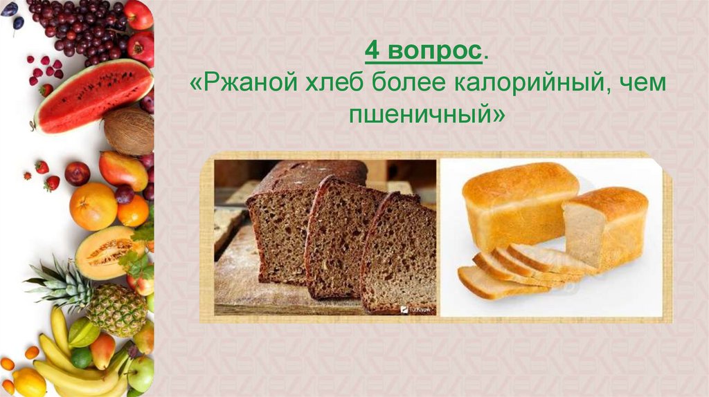 4 вопрос.«Ржаной хлеб более калорийный, чем