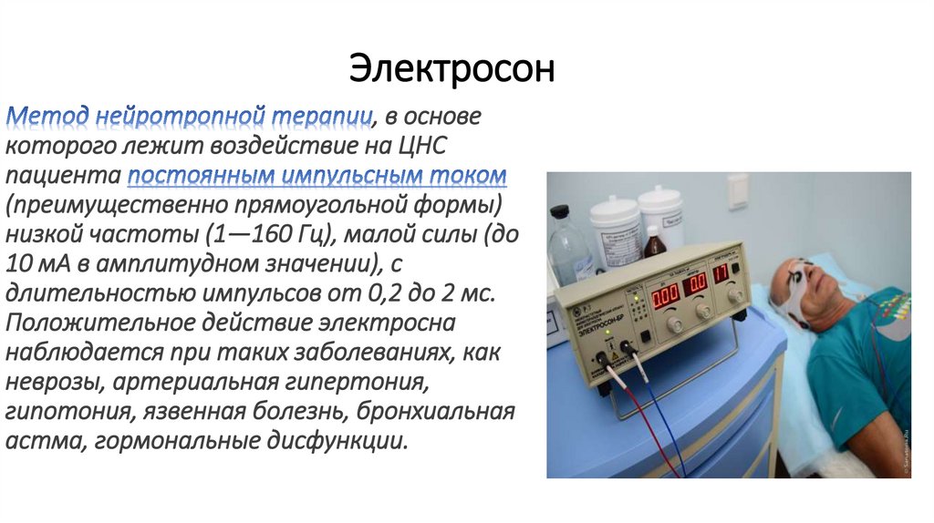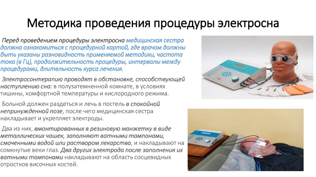 Методика проведения процедуры электроснаПеред проведением процедуры электросна медицинская сестра
