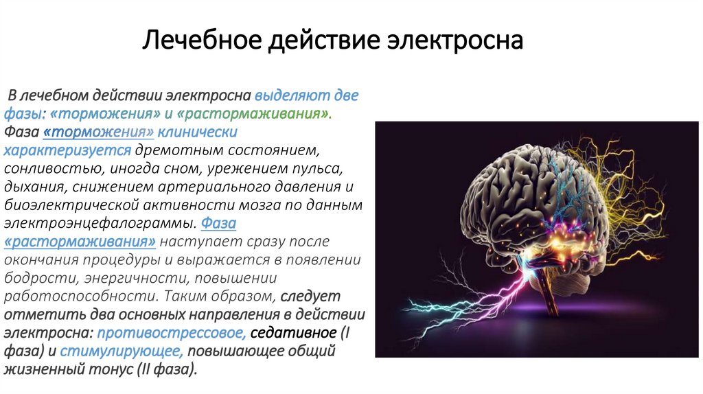 Лечебное действие электроснаВ лечебном действии электросна выделяют две