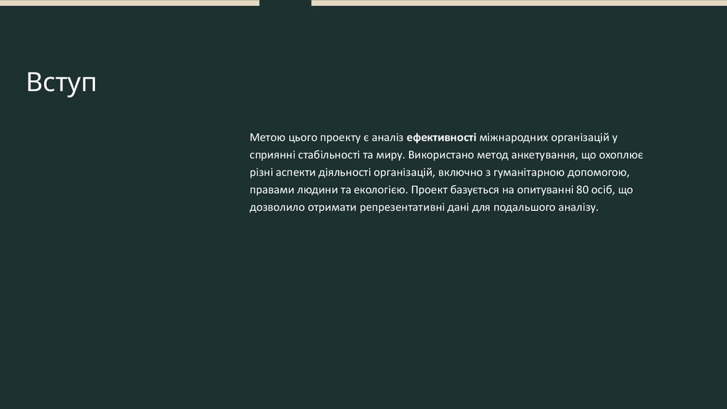 ВступМетою цього проекту є аналіз ефективності міжнародних організацій у