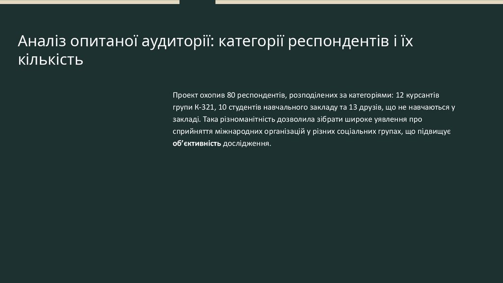Аналіз опитаної аудиторії: категорії респондентів і їхкількість