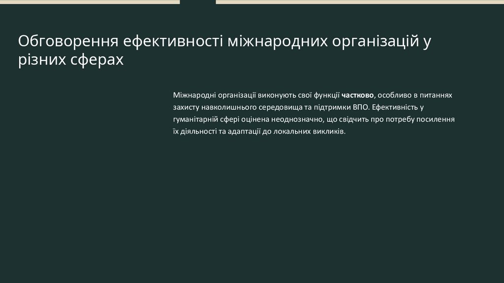 Міжнародні організації виконують свої функції частково, особливо в питаннях